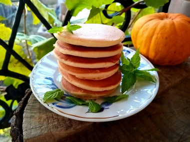 Готовые оладьи переложите на тарелку и подайте к столу. Подать можно с медом, вареньем, сладкими соусами, свежими фруктами и ягодами. Приятного аппетита!