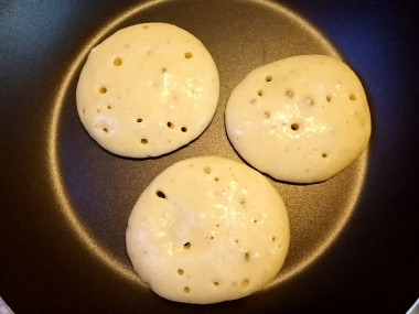 Оладьи на глазах увеличиваются, поднимаются и в готовом виде толщина составляет около сантиметра.