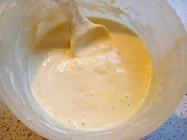 Аккуратно лопаткой вмешайте взбитые белки в тесто. Готовое тесто должно получиться нежное, пышное.