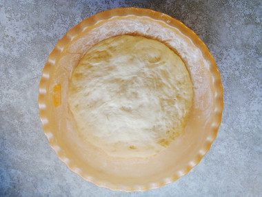 Замесите мягкое тесто, поместите его в глубокую миску, накройте полотенцем и поставьте в теплое место без сквозняков на пол часа. Сливочное масло для смазывания растопите в микроволновке или на водяной бане и остудите до комнатной температуры. Заранее включите духовку на 180 градусов.