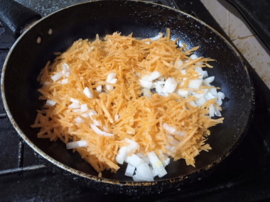 5. Положите в сковороду морковь, помешивая, обжаривайте все вместе еще минут 5.