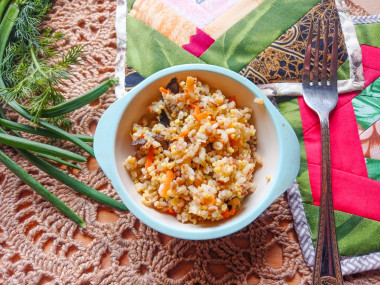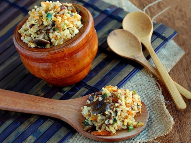 Очень вкусное блюдо Монастырская каша пшенная! Перловка, гречка, рис и пшено делают очень сытное и насыщенное блюдо а грибы лук и морковь дополняют яркими сочетаниями продукта. Грибы я добавил вешенки, а моркови и лука чуть больше чем по рецепту, что-бы больше показывало красок чем крупы. Добавил еще немного паприки, чеснока, сбор перцев, укроп, петрушки. Было желание добавить болгарский перец, но отговорили. В следующий раз обязательно попробую.