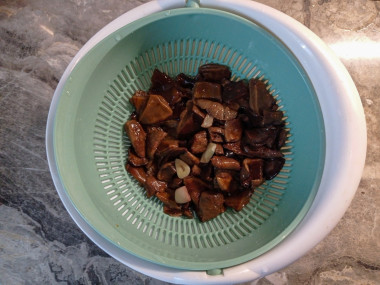 Рис я взяла обычный круглозерный. Грибы использовала маринованные, предварительно промыв их и откинув на дуршлаг, чтобы стекла лишняя вода. Перловку перед варкой залила водой примерно на 40 минут.