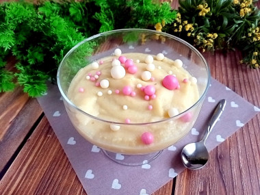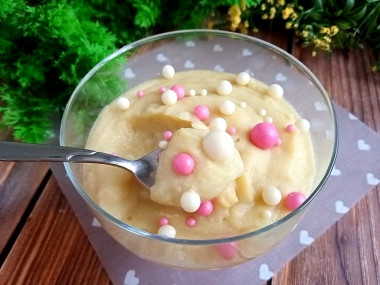 Масса получилась густой и нежной! Она напоминает фруктовый крем. На мой вкус многовато сахара, но с кислыми яблоками будет в самый раз. Вкус яблок чувствуется очень хорошо, а манку я и не заметила. Прекрасный десерт!