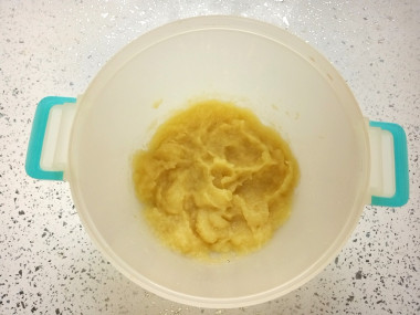 Готовила на две порции. Начала с яблок, взвесила их в очищенном виде. Варила в микроволновке 10 минут при 750 Вт. Яблоки разных сортов будут развариваться разное время. Сразу горячими взбила их погружным блендером.