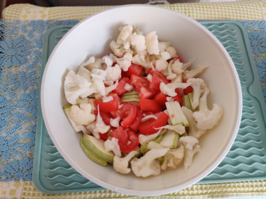 Как сделать филе индейки на пару в мультиварке? Подготовьте продукты. Филе индейки подойдет любое — и грудки, и бедра. Выбирайте охлажденное мясо — оно получится сочнее. Набор овощей может быть любым. У меня это цветная капуста, кабачок, морковь и помидоры. Подойдут как свежие, так и замороженные овощи. Предварительно их можно не размораживать.