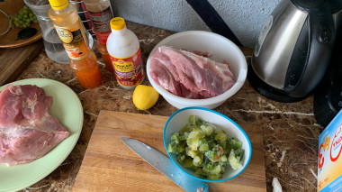 Перемешайте и оставьте мясо помариноваться минут на 15.