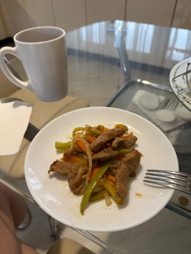Очень люблю такие рецепты. Сегодня готовила мясо по тайски с овощами))