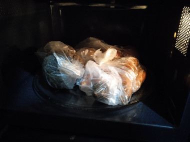 Картофель, морковь, свекла, сваренные в микроволновке в пакете, ускорят процесс приготовления любимых салатов как оливье или винегрет. А также других салатов в составе которых есть отварные овощи.