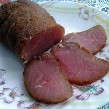 У готового вяленого мяса нет никаких посторонних запахов, только соль и специи. Вялилось мясо неделю. Съелось за один день.