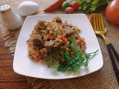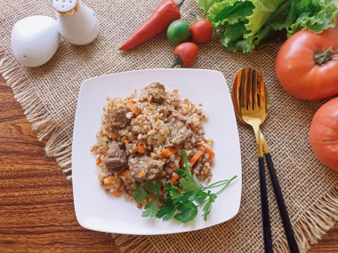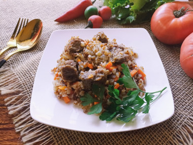 Хэллоу эврибади! Приготовил слегка отступив от оригинального рецепта. 1.3 кг свинины на 2.5 стакана гречи. Вышло просто бомбезно, добавлял из специй паприку, перец горошком, лавровый лист, приправу для свинины, черный перец молотый, зиру и соль. Всё по вкусу, но вышло очень вкусно. Мясо нежное, греча сочная, не сухая в общем автору рецепта респект, однозначно рекомендую попробовать приготовить!