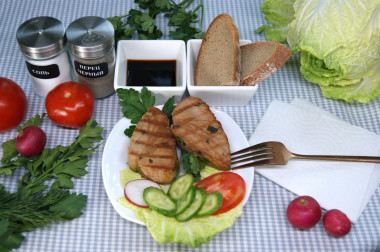 Получилось очень вкусно и очень сытно. Хорошо что я ела с овощами. Будь гарнир потяжелее - объелась бы.