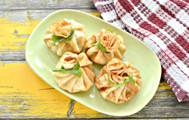 Подавайте мешочки из блинов к столу. Приятного аппетита!