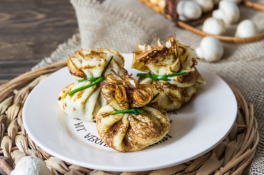 Блинные мешочки с курицей и грибами(Pancakes with filling/Recipe)