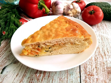 В начинку, кроме капусты и яиц,добавила морковь. Выпекала пирог при 180° 40 минут.