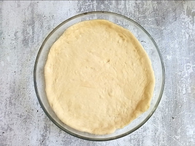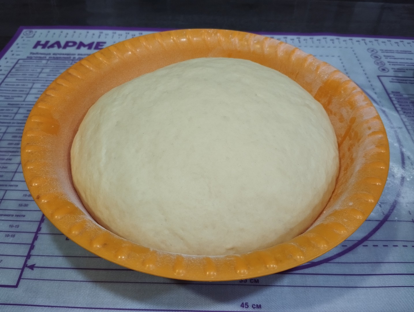 Тесто должно получиться однородным, мягким, податливым, не липнущим к рукам. Сформируйте из теста шар. Прикройте его полотенцем и оставьте в теплом месте для подъема примерно на 70-80 минут. Время подъема будет зависеть от температуры воздуха и активности дрожжей.