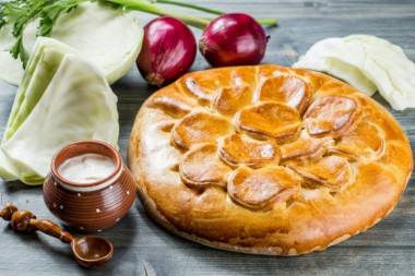На Руси такие пироги называли "капустниками". Готовность пирога раньше проверяли, протыкая его лучинкой: если тесто не прилипало - готово. Чем тоньше нашинкована капуста, тем сочнее и нежнее получится начинка.