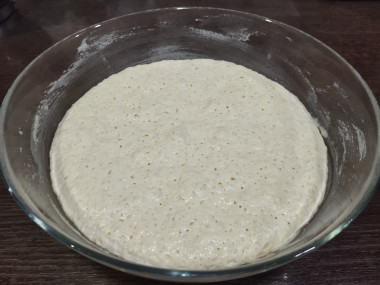 К этому времени опара увеличилась в объеме в 2 раза. На ее поверхности появилось множество пузырьков.