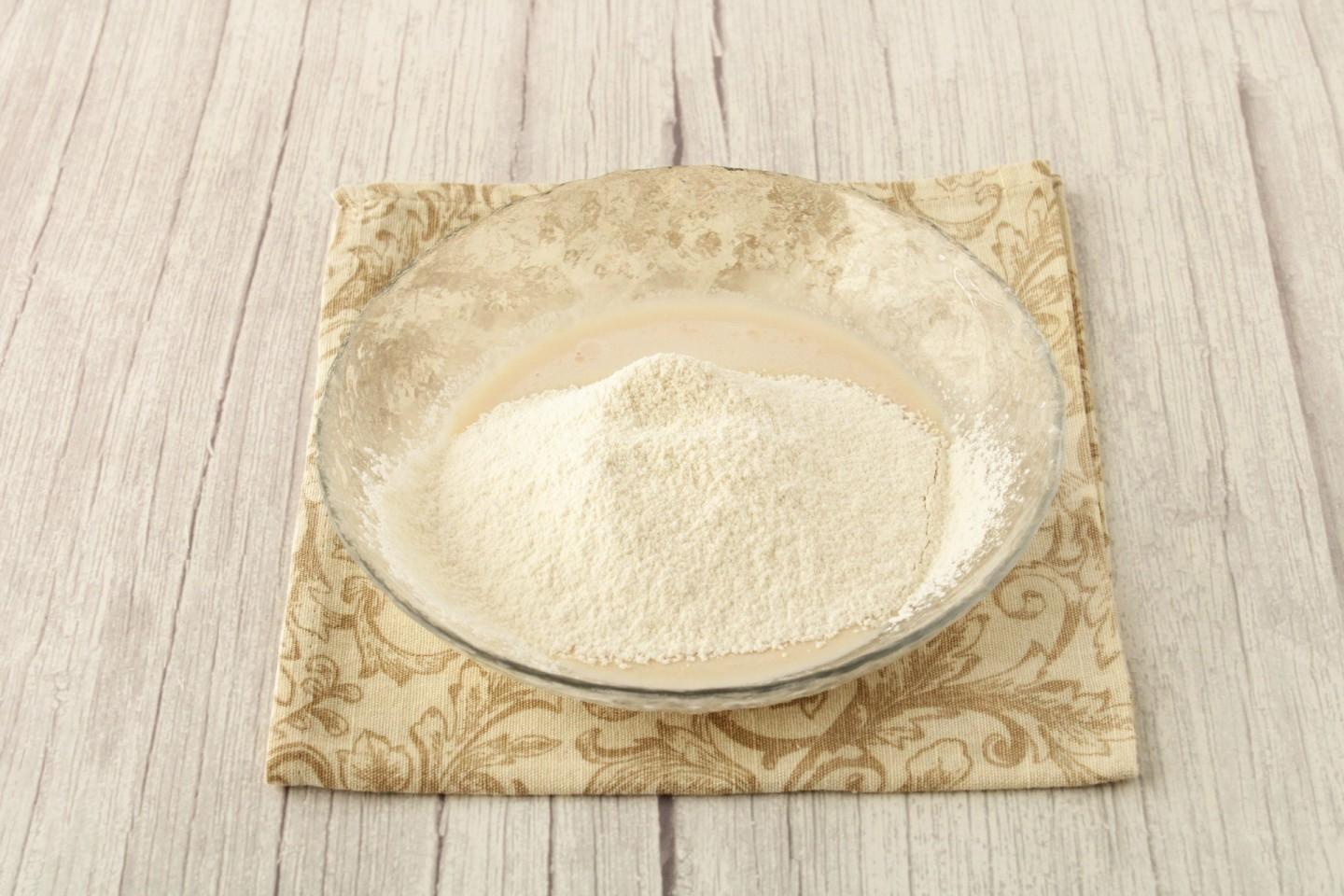 В подходящей по размеру миске растворите в теплом молоке дрожжи и сахар. Сахар здесь нужен как питательная среда для дрожжей - он запустит процесс брожения. Оставьте смесь на 5-7 минут: если на поверхности появилась легкая пенка или пузырьки, значит, дрожжи активны, можно двигаться дальше.