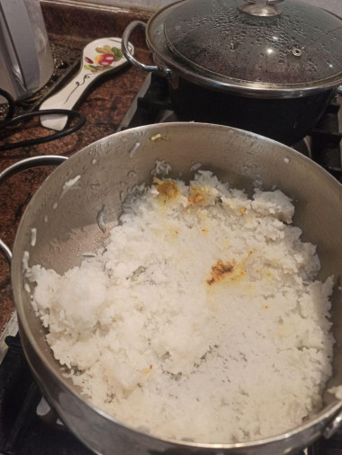 получилось грубо говоря не очень. на 5. минуту после закипания риса воды в кастрюле уже не было, пришлось доливать. в итоге рис получился слипшийся как рисовая каша. делал всё по рецепту, точно с весами.