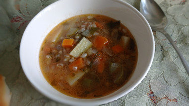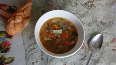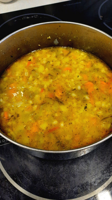 Готовый суп храните в холодильнике в закрытой кастрюле не более 3-х дней. При разогреве он может загустеть из-за перловки - просто добавьте немного воды или бульона.