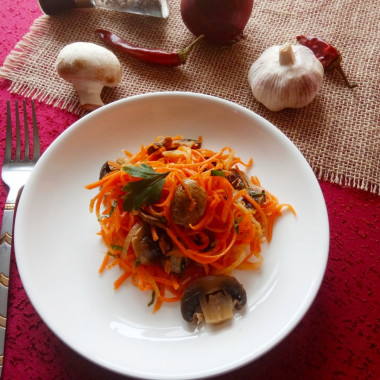 Отличная закусочка получилась! Особенная благодарность от мужчин за салат шампиньоны с корейской морковью и луком. Мировой закусон - их вердикт.большое спасибо за хороший рецепт!