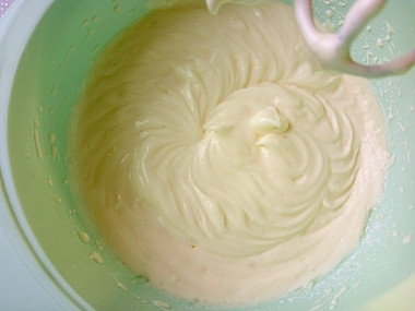 На высокой скорости миксера взбейте желтки с половиной нормы сахара и ванильным сахаром в течение 5-6 минут до плотной светлой массы.