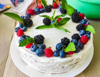 Делали утром, к вечеру он успел настояться и пропитаться. Не смотря на допущенную ошибку в приготовлении первого коржа, торт получился нежным, не жирным, в меру сладким. Ягоды добавляли приятную кислинку. Также в светлый корж мы добавили ванильный сахар с настоящим экстрактом ванили, поэтому он у нас получился в маленькую черную точечку, что выглядело довольно интересно.