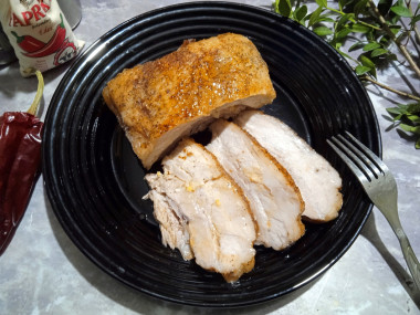 Сегодня приготовила свинину по этому рецепту. Хотя у меня была и не грудинка, а кусочек биточка с небольшим количеством сала, все-таки решила использовать этот простой рецепт. Ничего лишнего, мариновать заранее не надо, быстро подготовил мясо и отправил в духовку. Из специй я взяла красный и чёрный перец, соль, немного готовой приправы для мяса. Также сделала небольшие надрезы на мясе и повставляла порезанные дольки чесночка. Мясо получилось замечательное!!! Сочное, ароматное, очень вкусное. В духовке держала дольше. Юлия, спасибо большое за рецепт. Рецепт рекомендую. Просто, быстро и вкусно. Вот мой фотоотчетик)))