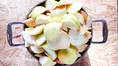 Решила приготовить кальвадос в домашних условиях из яблок. Готовила из расчета на 4 кг яблок (садовых). Конечно, количество небольшое, но хотелось попробовать. Винных дрожжей у меня не было. По расчетам калькулятор мне нужно было 2,6 гр. Покупать ради такого небольшого количества дрожжи я не стала, добавила вместо них три горсти пшеницы. Бродить оставила на три недели вместо двух.