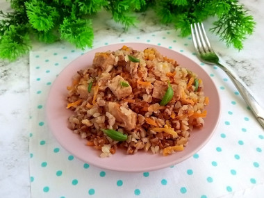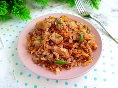 Гречневая каша сочная, ароматная и очень вкусная! Мясо хорошо размягчилось и пропитало гречку с овощами своим соком.