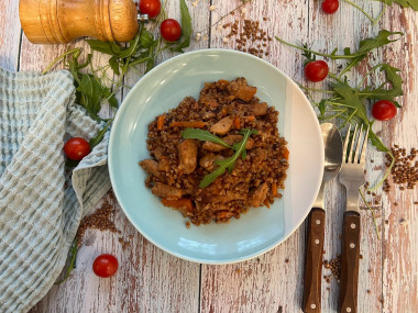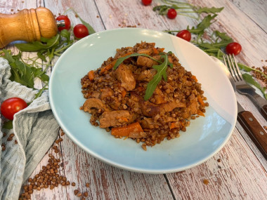 Получилось отличное горячее на обед с рассыпчатой, ароматной гречкой, мягким и сочным мясом!