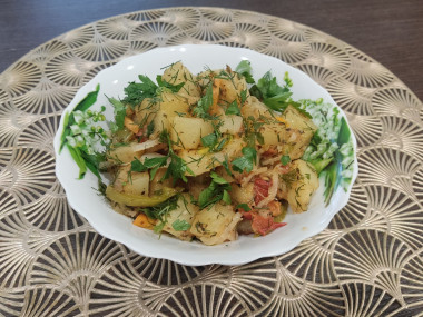 Овощи получаются сочными, а само блюдо ароматным за счёт трав.