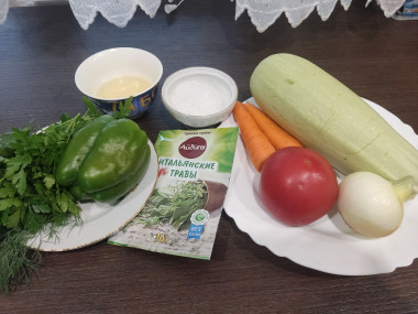 Интересное исполнение кабачков. Удивительное сочетание с болгарским перцем и итальянскими травами. Готовила блюдо 25 минут (не учитывая подготовку овощей, это ещё столько же по времени) и морковь все равно получилась твердоватой. А так, очень вкусно.