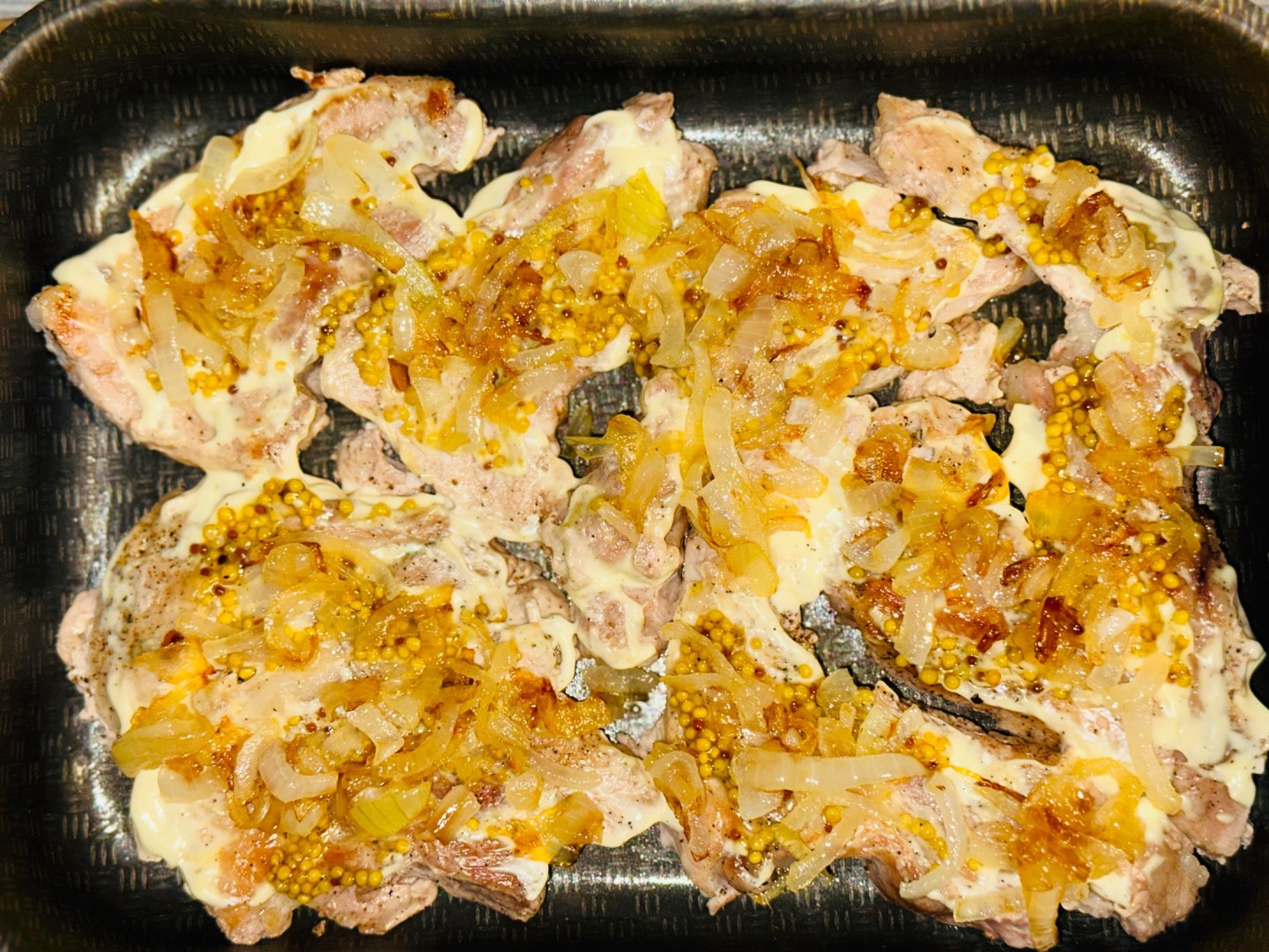 Это блюдо- простой, но вкусный рецепт второго 🔥 перепутала мясо) и вместо карбоната достала шею 😂 нарезала небольшими кусочками. Так как нужна была духовка, то решила упростить себе задачу - обжарила на сильном огне мясо, отдельно до золотого цвета лук. Потом все собрала, как сделал автор. Убрала в духовку на 15 минут и вуаля вкусное и сочное мясо готово!!! Спасибо автору ❤️