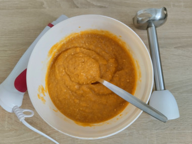 Рецепт икры из баклажанов в мультиварке мне очень приглянулся. Во-первых, в наличии были все необходимые продукты, во-вторых, готовить в мультиварке в такую жару одно удовольствие. Порезанные овощи я уложила в чашу и включила режим тушения на два часа, как рекомендуется в рецепте. Но по ходу приготовления степень готовности стала меня устраивать уже через час. Овощи ещё не были разварены до состояния икры, но уже были мягкими и не сырыми. Поэтому я выключила мультиварку, немного остудила икру и пробила её ручным блендером. Рецепт не привычен для меня наличием болгарских перцев. С одной стороны, они придают икре своеобразный приятный привкус, но с другой - попадаются кусочки шкурки. Можно было, конечно, через сито икру пропустить, чтобы избавиться от них, но я этого делать не стала - в таком виде она очень понравилась моим домашним. Из-за того, что в моей икре больше, чем требуется, моркови, она насыщенного оранжевого цвета и по внешнему виду напоминает магазинную, только в разы вкуснее))