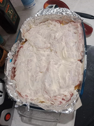 Готовил 40 мин при Т 180 гр. добавил слой грибов немного. Блюдо имеет место быть. Я бы не сказал.."Ваааауууу!" Но..для разнообразия пойдет. При готовке правда сока много выделяет на дно протвиня..