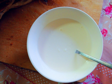 В посуде для приготовления соуса смешайте до однородного состояния ряженку, сметану и майонез.