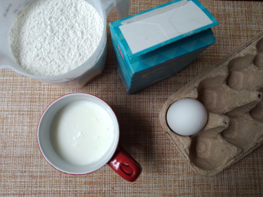 Как приготовить таратушки на кефире пышные? Подготовьте все необходимые ингредиенты. Муку берите высшего сорта. Яйцо подойдет любого размера. Если у вас нет сахарной пудры, её можно сделать самому, перемолов сахар в кофемолке. Такая лучше готовой, так как в ней кроме сахара не будет никаких примесей, которые обычно добавляют в пудру, чтобы она оставалась рассыпчатой. Вместо кефира можно использовать кислое молоко.