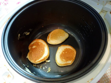 По началу мне не очень понравилось жарить таким образом оладья. Переворачивать их было не очень удобно, и первые три штуки очень плохо отходили от поверхности чаши мультиварки. Но потом я приноровилась. Перед каждой порцией оладушек смазывала чашу растительным маслом. Такой способ приготовления хорош тем, что оладьи не подгорают, а зарумяниваются (конечно, может они и пригорят, если надолго их оставить).