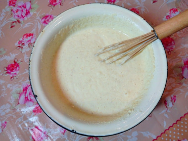 Влейте тонкой струйкой кефир к яичной смеси. Постоянно перемешивайте смесь, чтобы не сварить яйцо.