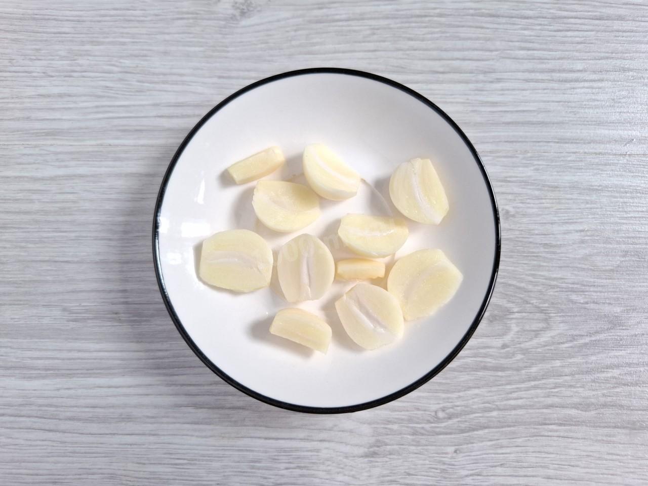 Чеснок очистите от шелухи и сполосните зубчики водой. Нарежьте чеснок пластинками или крупными кусочками. Количество чеснока регулируйте по своему желанию.