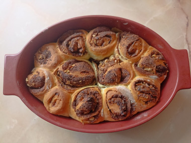 Булочки синнабон обычно даже не доживают до момента, когда остынут. Они очень вкусные! А уж когда к коричной начинке добавляется шоколад и орехи... с такими думаешь, хоть бы дождаться, когда испекутся - пахнут они умопомрачительно!