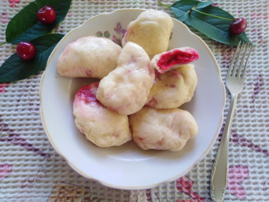 Ну, как же без вареников с вишней?! Это моя любимая начинка для вареников. Заинтересовал рецепт процессом приготовления теста, я заварное делала только на эклеры. Решила попробовать и приготовила тесто для вареников с вишней заварное. Процесс не сложный, а результат очень вкусный) Из такого теста действительно хорошо лепить вареники, оно не теряет свою форму. Продукты для заварного теста очень простые и всем доступные. Когда залила кипяток, мешала ложкой. Муки понадобилось чуток больше, чем указано в рецепте. Вымешивала до однородности и эластичности. Вышло мягкое и не липнущее к рукам заварное тесто. Поделила его на кусочки для вареников и раскатала. Для начинки вишню с сахаром не смешивала, тут я решила просто класть вишенки на кружок теста и присыпать сахаром, мне так привычнее. Полтавскую кромку я делать, к сожалению, не умею, поэтому защипала вареники по-простому) Готовила вареники из заварного теста с вишней на пару, они так вкуснее, как по мне. Итог - шикарные вареники с вкусным тестом и вишнёвой начинкой. Заварное тесто великолепное, буду готовить его и в дальнейшем. Все остались очень довольны! Спасибо автору!