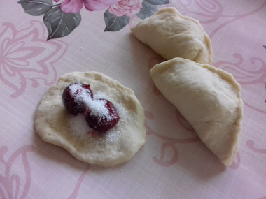 Все замечательно . СОВЕТ: в начинку добавляется немного крахмала чтобы не вытекал сок вишни. Делать это надо когда кладешь начинку.