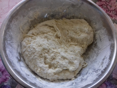 Теперь частями добавляйте оставшуюся муку и замешивайте тесто той густоты и консистенции, какая нужна. А нужно, чтобы тесто не липло к рукам, не было слишком крутым, хорошо держало форму. И муки у вас может уйти либо больше, либо меньше, чем у меня.