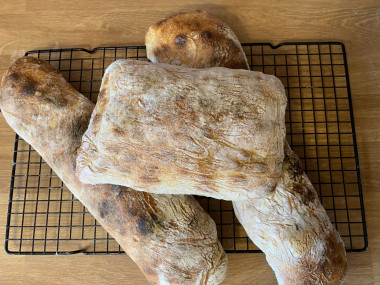 Достаньте чиабатты, остудите и подавайте к столу. Приятного аппетита!