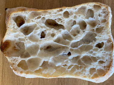Чиабатта.. что может быть вкуснее этого хлеба?? Нежнейшая и безумная структура мякиша, как произведение искусства.. Тонкая и хрустящая корочка с ароматом оливкового масла, завораживает.. Это самый сложный, но в тоже время увлекательный процесс приготовления, а чем выше гидротация теста, тем интереснее вкус и прекрасней мякиш..