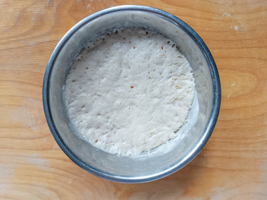Накройте миску пищевой пленкой и оставьте подходить на час. Оно вновь вырастет в объеме.