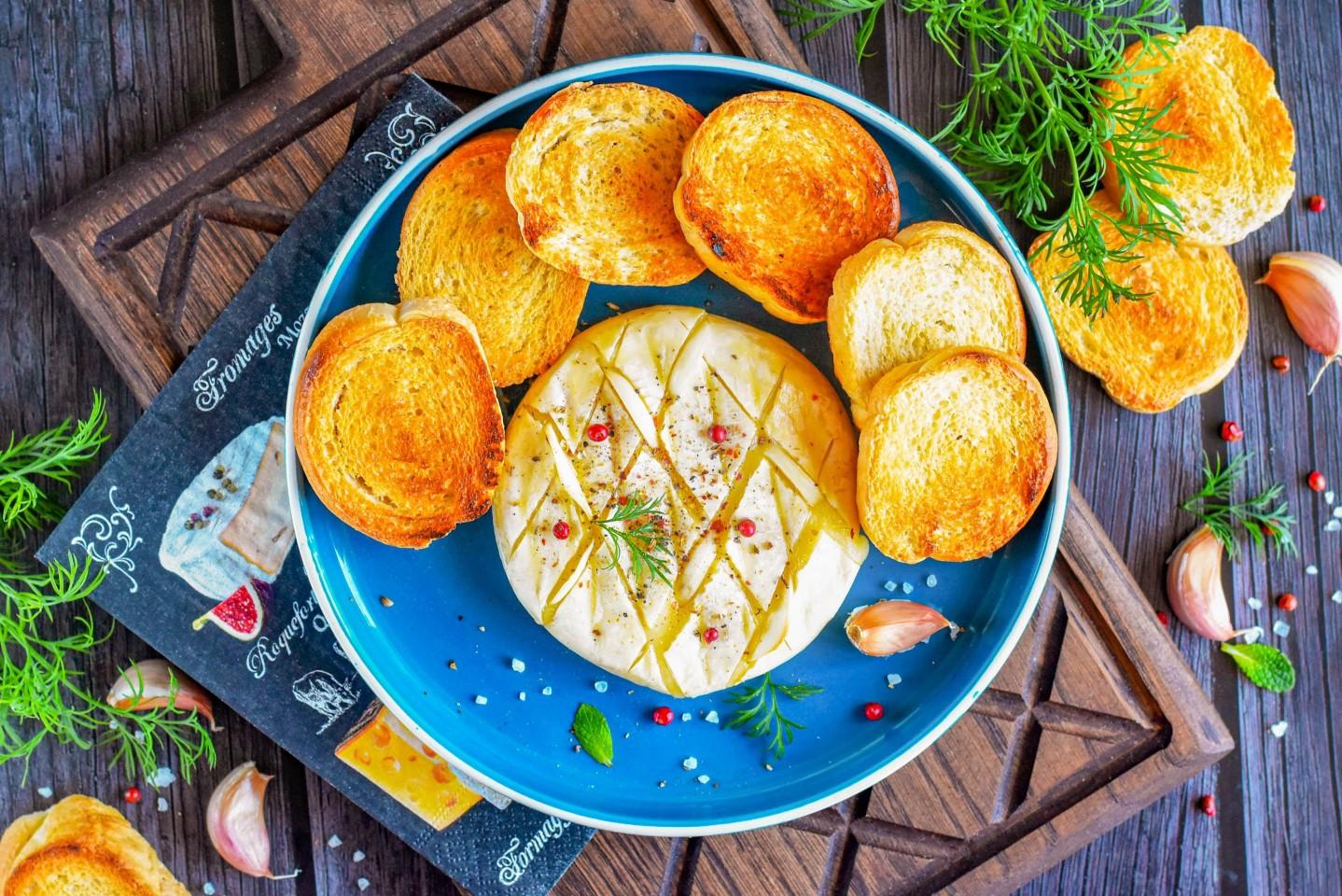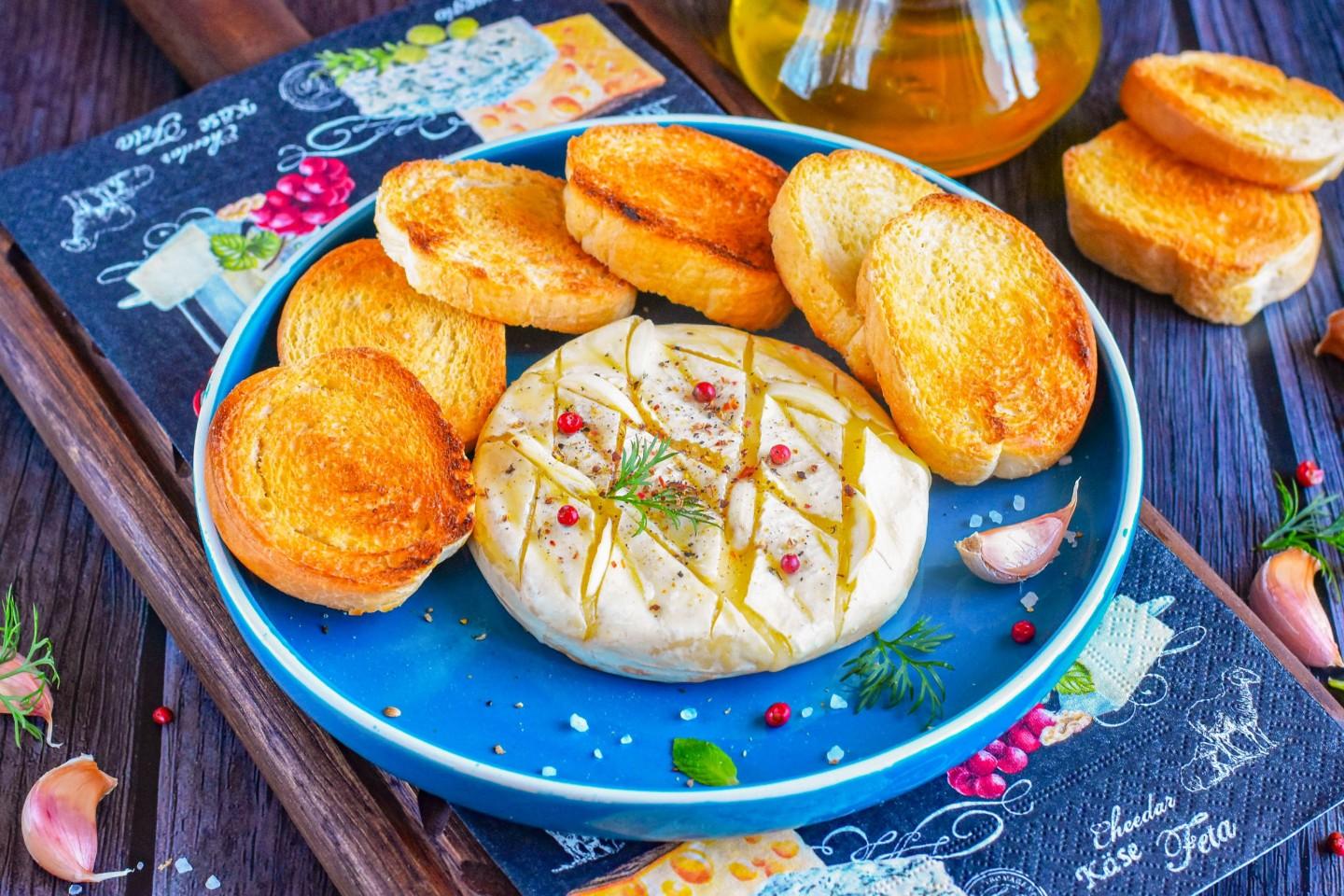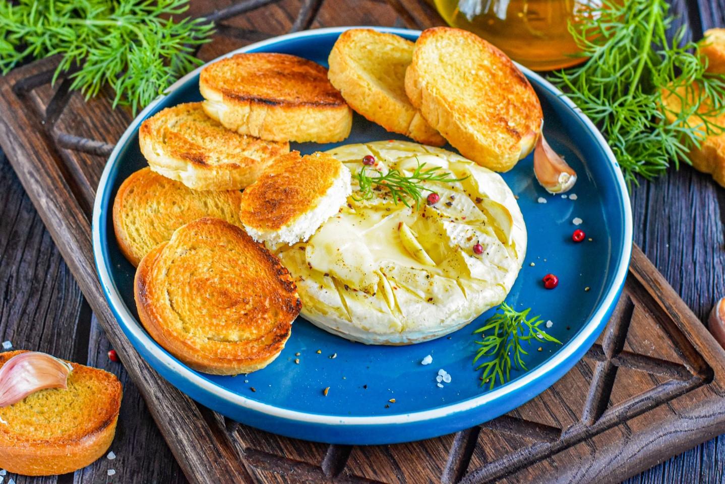 Запечённый камамбер с чесноком — это простое, но изысканное угощение. Добавление чеснока придаёт ему особую пикантность, а хрустящий багет идеально подходит для того, чтобы макать в расплавленный сыр.